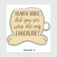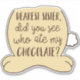 Una linda y humorística mediana pegatina de Pascua con una graciosa cita que dice "La hermana más valiente, ¿viste quién se comió mi chocolate?"
