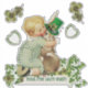 ¡Bésame, soy irlandés! Hermoso bebé abrazando un conejo lindo con gorra leprechaun, rocas de champú verde, corazón de trébol, estilo vintage diseño caprichoso para el Día de San Paddy ( St.Patty ).