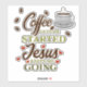 Pegatina "El café me empieza, Jesús me mantiene en marcha"