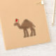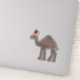 Esta impresionante pegatina navideña presenta una imagen de arte digital de un lindo camello Dromedary de color marrón con hermosas pestañas largas y una única joroba en su espalda. El camello está vestido para celebrar a los Navidades con un sombrero de Santa Claus rojo y blanco en la cabeza. El camello aparece en la Biblia y es un símbolo tradicional de Navidades.