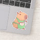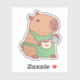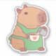 Un doodle de un bonito capibara con delantal verde haciendo un café con leche vertida en el café. ¡Ideal para los amantes del capibara y del café!