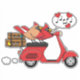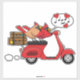 Un ilustracion de los adorables personalizados cardenales rojos que conducen en una motocicleta roja mientras cantan una canción de amor. El diseño de esta pareja de aves kawaii es un regalo para los amantes del corazón y de los día de San Valentín.