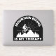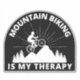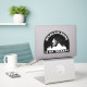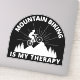 Este pegatina es perfecto para los amantes del ciclismo de montaña. El diseño es todo blanco sobre un fondo negro.