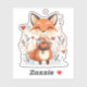 Un zorro sonriente sostiene un ramo de flores y corazones en este bonito diseño de El día de San Valentín de cabaña.