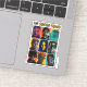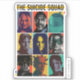 Colorida cuadrícula de estilo retro con los miembros del Escuadrón del Suicidio: Harley Quinn, Bloodsport, King Shark, Polka-Dot Man, Ratcatcher 2, Javelin, Peacemaker, The Thinker y Colonel Rick Flag.