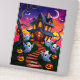 Explore este encantador ilustracion de Halloween, que presenta una casa embrujada con espanto bajo una luna creciente, rodeada de calabazas y un sendero misterioso. ¡Perfecto para los amantes de Halloween!