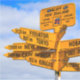 La señalización Stirling Point se erigió primero en c. 1960. La señalización original de madera tenía seis cuchillas de destino, entre ellas Dog Island, Ruapuke Island, Wellington, Londres y el Polo Sur. Después de repetidos vandalismo, se instaló un puesto metalizado y se instalaron doce cuchillas de destino.