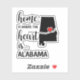El hogar de Alabama es donde está el corazón - en escritura mixta y letra negra en mayúsculas con la silueta del estado y un corazón rojo.