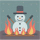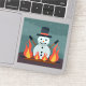 El hombre de nieve no tiene miedo del fuego. El hombre de nieve en el camping