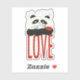 Adorable, personalizado lindo oso panda con flor de rosa roja romántica, corazones y pegatina dulce de amor para los niños.
