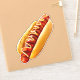 SlipperyJoe's hot dog anidado soft bun vibrante mostaza amarilla topping condiment carne asada cortada en espiral parrillada marca la comida comida apariencia carbonizada deliciosa delicia culinaria a la parrilla marca el orgullo gay regalos LGBTQIA verano artístico BBQ vibe zigzag patrón