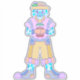 Este dibujo digital muestra a un perro azul feliz con manchas azules, llevando un gorra amarillo, pantalones cortos amarillos con acentos coloridos, una camisa morada y guantes lindos. Está sosteniendo una maceta que cultivó, mostrando su pulgar verde. La expresión del perro es increíblemente feliz, y está claro que está orgulloso de su planta. Esta obra de arte es perfecta para todo aquel que ame el arte animal lindo y peculiar.