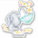 Pegatina vinílico personalizado con un tierno elefante que atrapa estrellas en caída. Este adorable ilustracion acuático tiene un elefante bebé que balancea un paraguas en su baúl y captura estrellas y corazones amorosos. La plantilla está preparada para que la personalize con su nombre (o puede dejar el cuadro en blanco si no se requiere texto personalizado). El diseño tiene una paleta de colores neutros en cuanto a género, amarillos, grises y verdes acuáticos. Estos pegatinas de vinilo removibles e impermeables son excelentes para su decoración de vivero y para decorar juguetes, botellas de agua y revistas, etc.