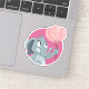 Personalizado corta pegatina de vinilo con un ilustracion de un lindo chica de elefantes con globos rosados; motivos de personalizados animales para niños