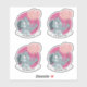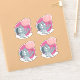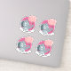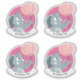 Conjunto de cuatro pegatinas de vinilo cortados con un ilustracion de un lindo chica de elefante con globos rosados; motivos de personalizados animales para niños; con plantilla de texto personalizado para el nombre de su hijo o mensaje personalizado