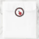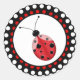 Sello para sobres/pegatina redondos elegantes hecho adentro con, con un borde externo negro, con los lunares blancos y rojos. Gráficos lindos de una mariquita roja y negra, en el centro. Toque final perfecto invitaciones del cumpleaños del lunar y de la flor de nuestro chica.