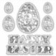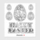 Elegante gris plateado Aspecto Feliz tipografía de Pascua y Pegatinas de corte de huevos de pascua, escoja blanco mate o transparente brillante