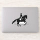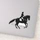 Una calcomanía de vinilo con un ilustracion en blanco y negro de un jinete vestido de forma formal. El caballo y el jinete están tocando una hermosa pirueta. Un elegante movimiento de vestimenta clásica.