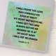 Este pegatina vinílico de versículo de la Biblia bonito muestra las palabras del verso de la escritura del Salmo 16:7-8 frente a un fondo revuelto entre verde y marrón. "Alabaré al Señor que me aconseja; aun por la noche, mi corazón me da instrucciones. Siempre he puesto al Señor delante de mí. Como está a mi derecha, no me sacudirán".