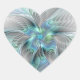Pegatina En Forma De Corazón Arte fractal de fantasía de mariposa azul verde ab