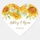 Boda de girasol amarillo Pegatina del corazón. El diseño cuenta con un ramo de girasol acuático y rosas. Vea el enlace de la colección en esta página para ver todos los elementos coincidentes de este hermoso diseño.