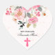 Pegatina En Forma De Corazón Chica Primera Comunión Acuarela Floral Rosa