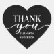 Una elegante y sofisticada pegatina con forma de corazón en negro y blanco para dar las gracias. Personalízala con tu nombre. Ideal para bodas y pequeñas empresas. Disponible en una variedad de colores. Diseñado para ti por Blackberry Boulevard.