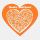 Pegatina En Forma De Corazón Feliz cumpleaños, corazones naranjas en blanco y n