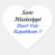 Salven a Mississippi, no voten republicanos. Pegatina del corazón