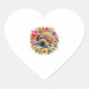Pegatina En Forma De Corazón lindo perro en flores coloridas adormilado perrito