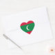 Bandera de las Maldivas. La bandera de la República de Maldivas es roja, con un gran rectángulo verde en el centro que lleva una media luna vertical blanca; el lado cerrado de la media luna está en el lado opuesto de la bandera. Se adoptó el 25 de julio de 1965. El rectángulo rojo representa la audacia de los héroes de la nación y su voluntad de sacrificar cada gota de sangre en defensa de su país. El rectángulo verde en el centro simboliza la paz y la prosperidad. La luna creciente blanca simboliza un estado de fe islámica unificada.