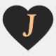 Pegatina En Forma De Corazón Monograma J color de oro en negro de medianoche, H