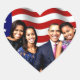 Óleo pintado por el presidente Barack Obama y familia con la bandera estadounidense detrás de ellos.