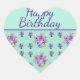 Pegatina En Forma De Corazón Pansy Flower Aqua Stripe Mamá floral Feliz cumplea