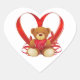 Pegatina mostrado en forma de corazón con un lindo oso de peluche con imagen de San Valentín. Personalizar o compra como está.