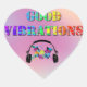 Sticker en cœur avec un fond flou arc-en-ciel et écrit Good Vibrations. En dessous un casque pour écouter de la musique.