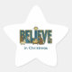The word "Believe" with a beautiful nativity scene on a holiday sticker containing the manger with baby Jesus, Mary, Joseph, a shepherd, sheep and a donkey. You can customize with your own quote. Fun for Christmas parties and get-togethers or gift wrapping.