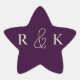 Pegatina de boda personalizada en forma de estrella con iniciales elegantes beige claro sobre un rico fondo púrpura oscuro. Perfecta para parejas,