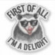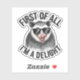 Este pegatina de opossum es perfecto para todo aquel que sepa que es una delicia (aunque otros no siempre la vean). Con unas gafas de sol confiables y opossum y la frase "Primero que nada, soy un Delight", este diseño es una manera divertida de expresar tu autoseguridad con un toque de humor. Hecho con vinilo duradero, este pegatina es genial para laptops, botellas de agua y más.