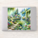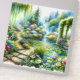 A dreamy cottagecore landscape unfolds with a winding stone path, cascading waterfall, and a serene lily pond surrounded by lush florals and trailing greenery. Soft watercolor textures blend pastel pinks, fresh greens, and tranquil blues, creating a whimsical, storybook atmosphere that feels both magical and serene. Romantic blooms, mossy arches, and shimmering water evoke an enchanting secret garden filled with boho charm and fairytale wonder. AI generated artwork.