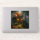 Description add a touch of mystical adventure to your outdoor gear laptop or a skateboard with this high-quality vinyl sticker featuring a stunning digital painting of a wizard standing before a glowing snail shell cottage in a moonlight forest. This 6 x 6" decal is as durable as it is magical printed on glossy white vinyl, it's water resistant and built to last making it the perfect accessory for fantasy