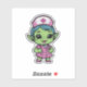 Trae un toque de cuidado intergaláctico a su colección. Este pegatina tiene una linda enfermera alienígena con uniforme, con un estetoscopio alrededor de su cuello. Perfecto para laptops, botellas de agua o cuadernos, es una manera divertida de mostrar tu amor por los héroes de la salud y todo lo extraterrestre.