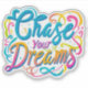 El pegatina Chase Your Dreams presenta una tipografía audaz y edificante con un estilo limpio y moderno que despierta motivación a primera vista. Su diseño vibrante y su acabado liso lo convierten en un lugar destacado en cualquier superficie. ¡Ideal para darle un toque de inspiración a tu rutina diaria!