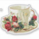 VINTAGE VICTORIAN TEACUP CON ROSAS PERSONALIZADO CORTAR ETIQUETA TRANSPARENTE