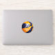 Este equipo personalizado colorea el pegatina de baloncesto con la imagen realista de un baloncesto que tiene paneles alternados de color azul y naranja, en los que se puede personalizar el nombre y número de camiseta del atleta más el nombre de la escuela o club y el nombre de la mascota - por katz_d_zynes