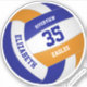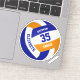 Este pegatina de vinilo sobre voleibol personalizado para chicas o niños presenta un sencillo voleibol con paneles azules, naranjas y blancos sobre los que se puede personalizar el nombre del jugador y el número jersey en un tipo de letra de letra varsity - de katz_d_zynes