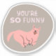 ¡Eres tan gracioso! Sí, tu perro te está juzgando, pero de la mejor manera. Tu perro cree que tienes el mejor sentido del humor. Celebra tu vínculo con tu perro o envía a este pegatina a un amigo con un perro. Esta forma de pegatina con temática de perro y su paleta de colores retro son una versión moderna de mediados de siglo. El color de fondo es neutro o beige, con letras rosas. Perro rosado. Perfecto para los amantes de los mascotas, los fans de los perros y los viajes con temas de mascota.