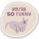 ¡Eres tan gracioso! Sí, tu perro te está juzgando, pero de la mejor manera. Tu perro cree que tienes el mejor sentido del humor. Celebra tu vínculo con tu perro o envía a este pegatina a un amigo con un perro. Esta forma de pegatina con temática de perro y su paleta de colores retro son una versión moderna de mediados de siglo. El color de fondo es beige, marrón y letras violetas claras. Perro gris. Perfecto para los amantes de los mascotas, los fans de los perros y los viajes con temas de mascota.