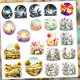 Pegatinas de Escenas Campestres de Pascua. © Elige una pegatina. Esta hoja de pegatinas tiene pequeñas escenas campestres y de jardín con un tema de Pascua.