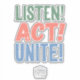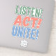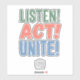 Pegatina ¡Escucha! ¡Actúa! ¡Únete!